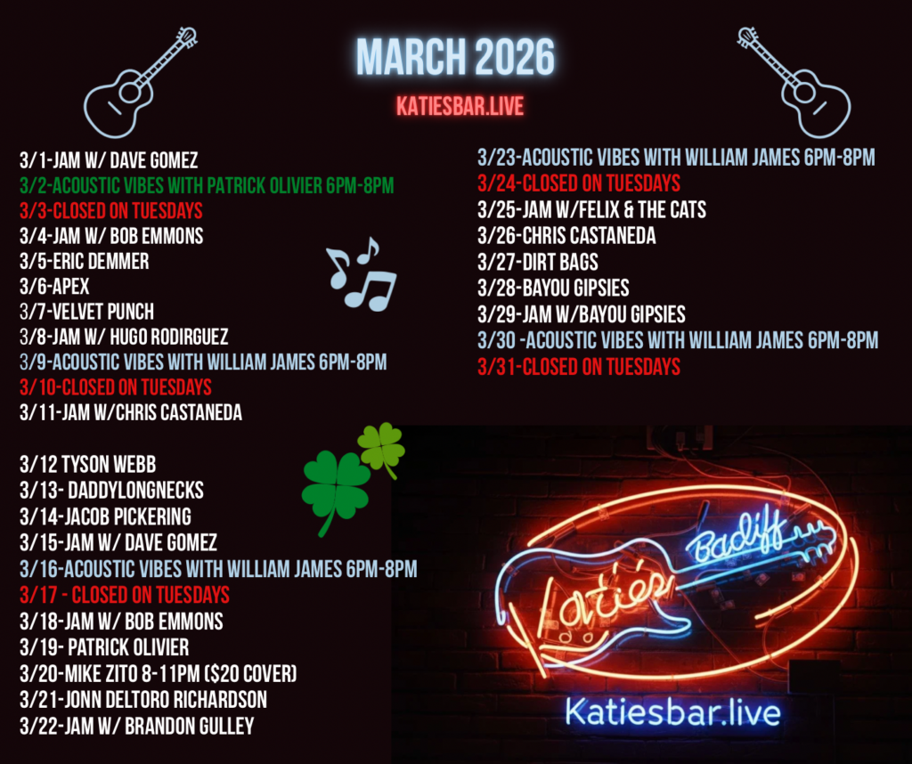 We would like to dedicate our new site to our friend, webmaster, and graphic design guru Bob Hawkins. We miss you Bob and appreciate the time, talent and energy you put into the promotion of Katie’s Bar and our wonderful musicians. Rest in Peace Bob! https://www.legacy.com/us/obituaries/legacyremembers/robert-hawkins-obituary?id=53437078&utm_source=webshareapi&utm_medium=share_button&utm_campaign=wsapimobile_beta&fbclid=IwZXh0bgNhZW0CMTAAAR3bHnrg5VKWogk0cMcG_cCgejeEKsCONFUTWfqtjtTYTiCVTcDzs25u5lk_aem_AU5SL8bPt9s2kcmEtNFnYnQa9e9cJkKLGskuca6pIQDZ0-9zJNrTv-yZLwR2ep9n1_8HSRK2L_ywEIqQ1unCW34g